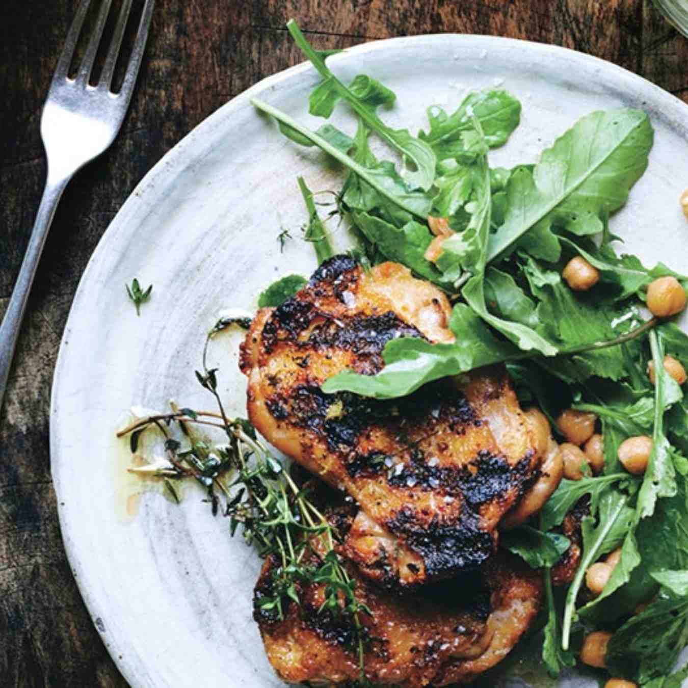 Đặt chảo trên lửa mức trung bình cao để chiên ức gà đã ướp gia vị trong 6 phút cả hai mặt